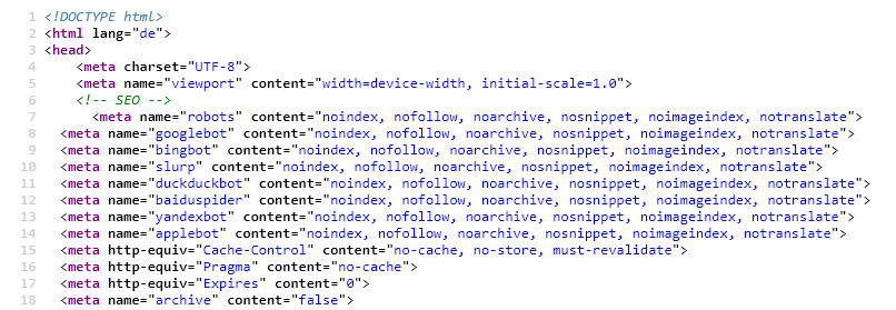 Doch im Hintergrund verrät der Code (Seitenquelltext) etwas anderes. Diese Seite will nicht gefunden werden. Suchmaschinen werden aktiv ausgesperrt, Inhalte dürfen nicht gespeichert oder archiviert werden. Echte Unternehmensseiten haben kein Interesse daran, unsichtbar zu sein, Betrugsseiten schon.