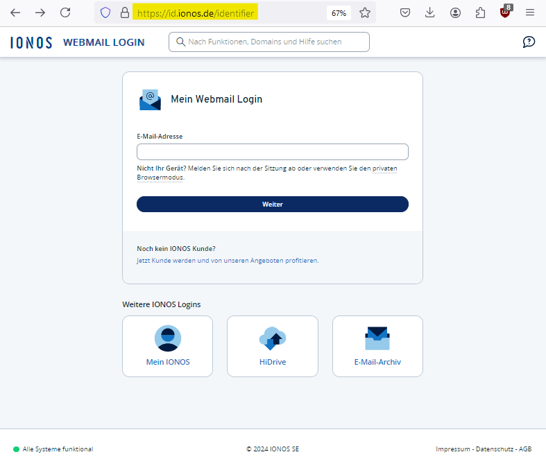 Logge dich in den IONOS Webmailer nur über die offizielle Website von IONOS ein: https://id.ionos.de/identifier